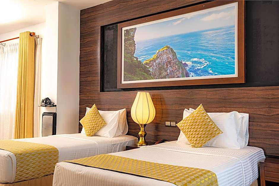 Deluxe Triple Room is 377 square feet and includes either a king-size bed 150-183 width or a single bed 80-130 width plus satellite tv , cable tv, hairdryer, ironing set, and safe.